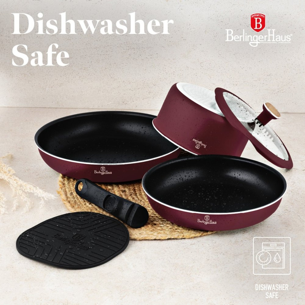 Elegantná kombinácia vínovej farby a dekoru svetlého dreva dodáva riadu moderný vzhľad, ktorý sa hodí do každej kuchyne. Stohovateľné prevedenie šetrí miesto a odnímateľná rukoväť umožňuje jednoduchú manipuláciu aj skladovanie. Pokrievky z tvrdeného skla so systémom Soft Close zabezpečujú bezpečné a pohodlné používanie.