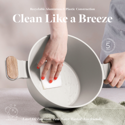 Vďaka nepriľnavému povrchu TitanPro pripravíte pokrmy s minimom tuku bez pripaľovania a zbytočnej námahy pri čistení. Povrch neobsahuje PFOA, olovo ani kadmium, takže varíte bezpečne pre celú rodinu. Praktické vyhotovenie aj odolné materiály ocení každý, kto hľadá spoľahlivý riad na každodenné použitie.