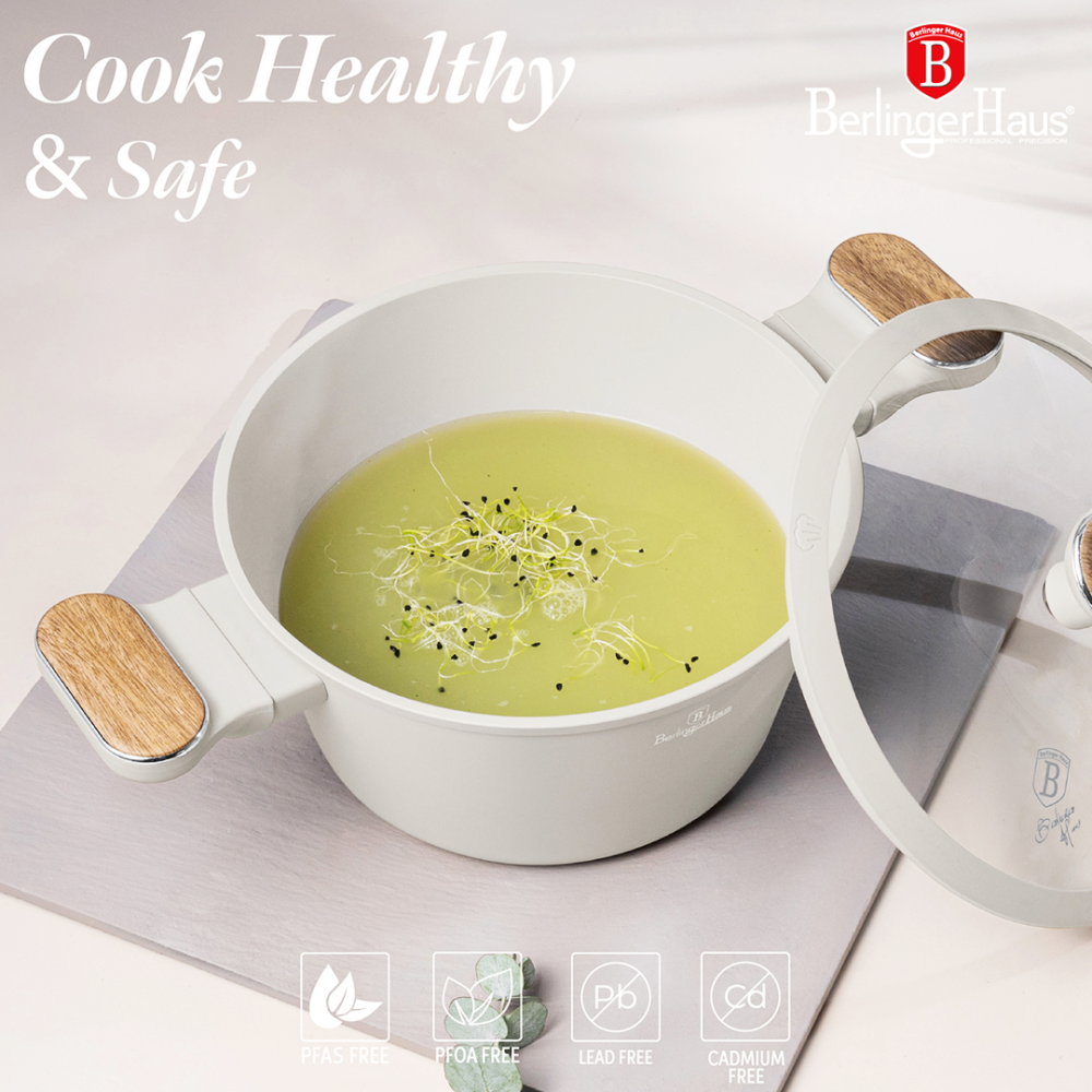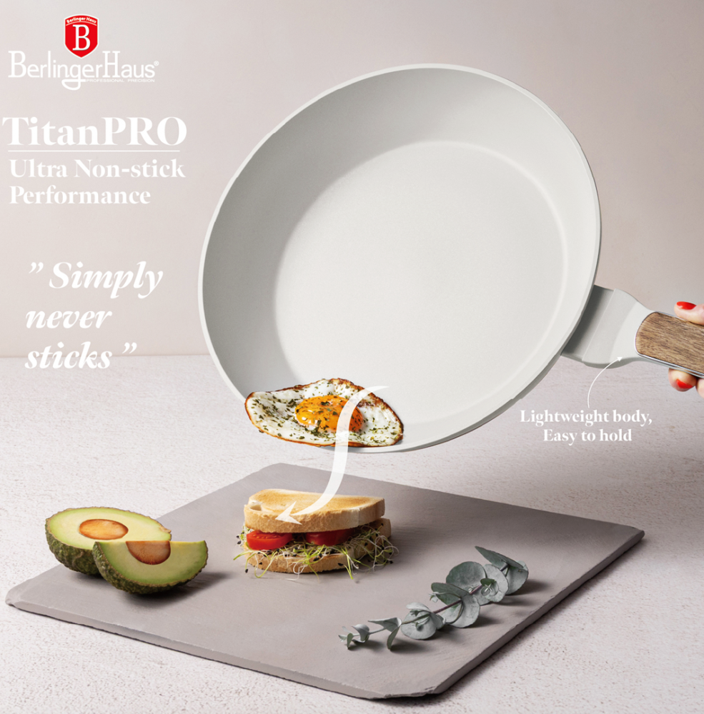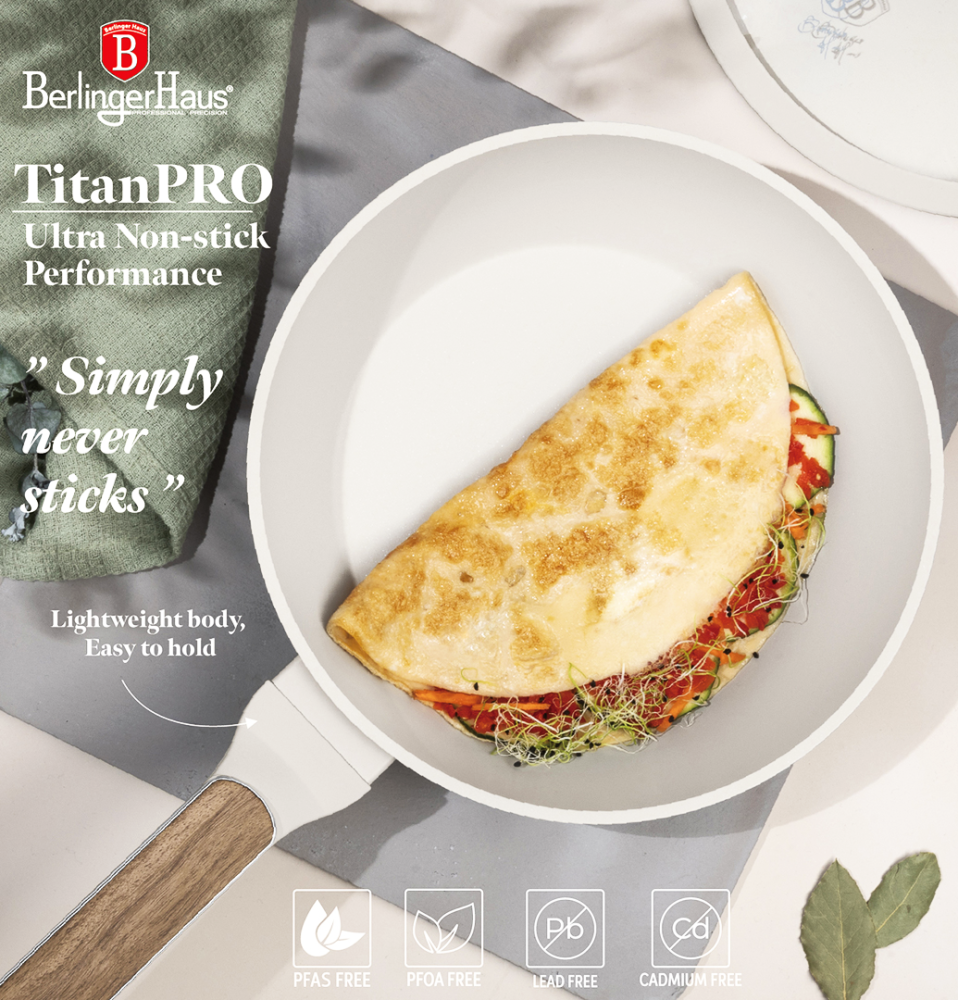 Sada riadu Berlingerhaus Sahara Nordic Collection prináša elegantný dizajn a maximálnu funkčnosť do každej kuchyne. Vďaka odolnému povrchu TitanPro, ktorý je až 3× odolnejší než bežné nepriľnavé povrchy, si užijete pohodlné varenie s minimom tuku a bez pripaľovania.