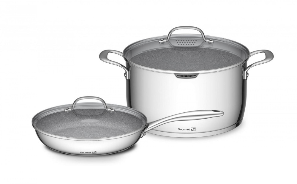 Celonerezová sada riadu G21 Gourmet Miracle je zo špeciálnej potravinárskej ocele 18/10 CrNis s vnútorným nepriľnavým povrchom GREBLON® C3+ s vysokou tvrdosťou a odolnosťou. Všetky hrnce aj panvice majú silné sendvičové dná na dokonale rovnomerné rozvádzanie tepla a sú vhodné pre každý typ ohrevu. Vďaka svojim jedinečným vlastnostiam a dokonalému prevedeniu je greblonový riad v nadčasovom dizajne veľmi obľúbený a vydrží dlhé roky.