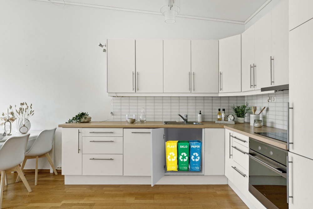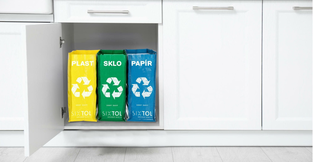 Zaobstarajte si šikovné tašky na triedený odpad Sort Easy 3 Slim. Sú farebne odlíšené podľa druhu odpadu – žltá na plast, zelená na skloamodrá na papier. Využijete ich doma, na chate alebo napríklad v dielni. Sú vyrobené z netkanej textílie, sú teda ľahko udržovateľné av prípade potreby ich môžete umyť vodou.