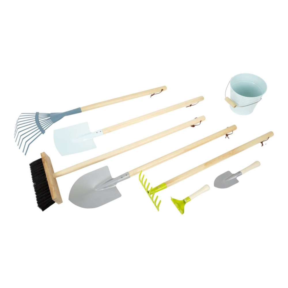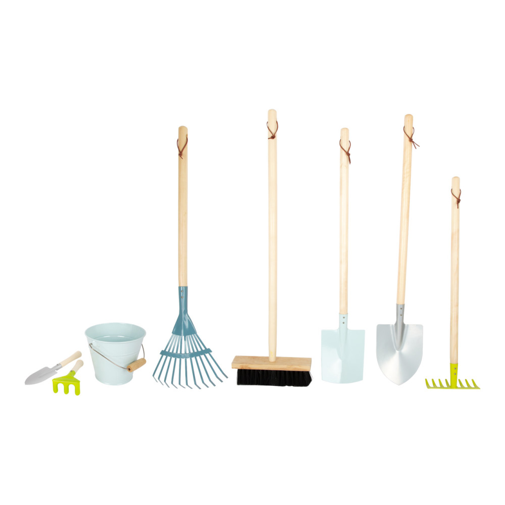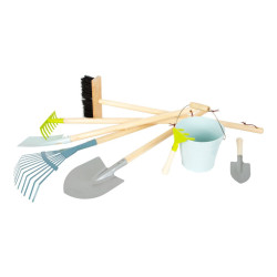 Trávi s vami vaša dcéra či syn čas na záhrade a pomáha vám s jej údržbou? Kúpte svojmu potomkovi set záhradného náčinia od značky Small Foot. Súprava obsahuje celkom 8 dielov – lopatku, hrabličky, vedro, hrable na lístie, metlu, rýľ, lopatu a klasické hrable. S týmto šikovným vybavením vám určite pomôže s prípravou hliny na sadenie nových rastlín, upratovaním aj starostlivosťou o rastliny.