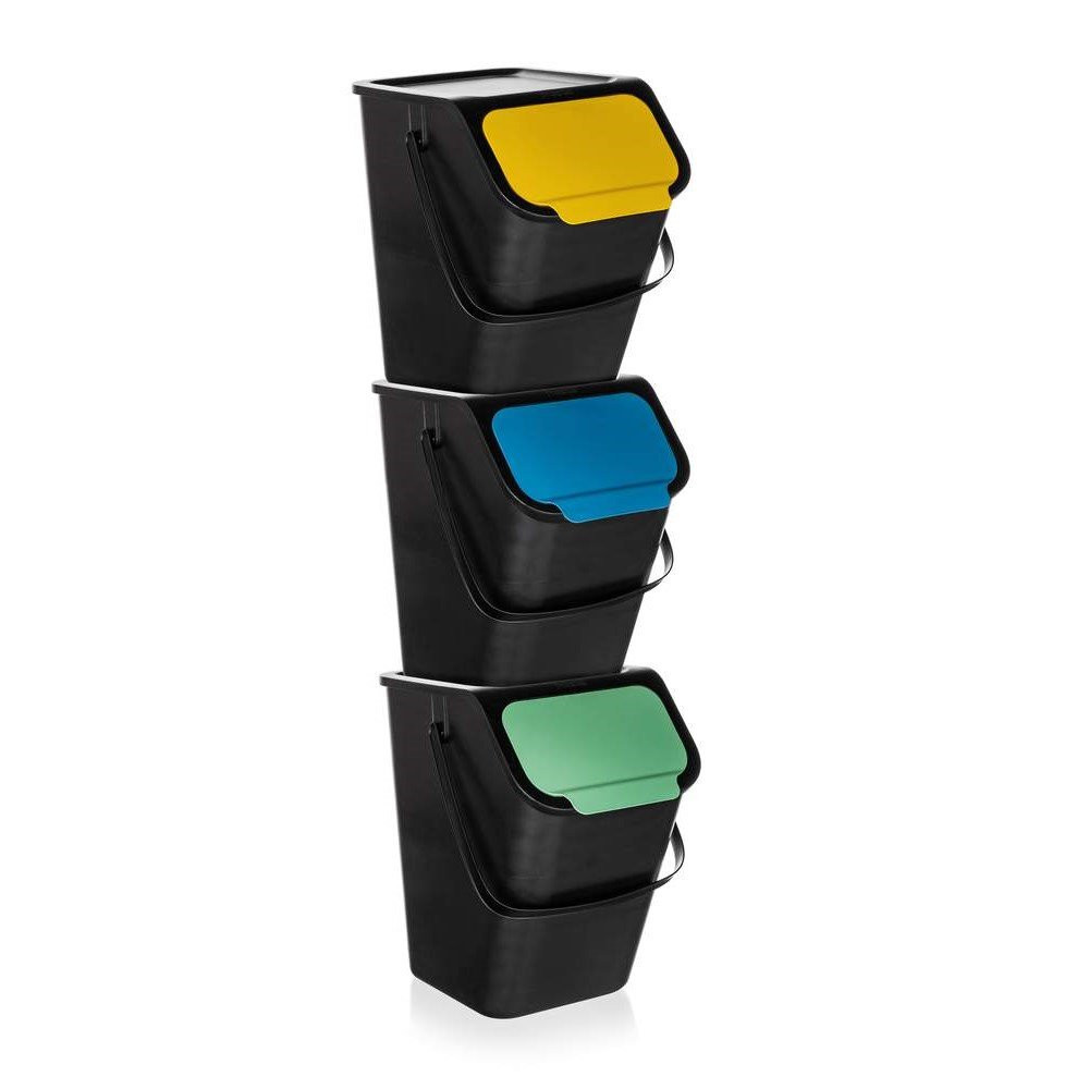 Sada košov vám uľahčí triedenie odpadu. Veko každého z nich má inú farbu – zelenú, žltú a modrú. Ľahko ich rozlíšite a ľahšie si zapamätáte, čo do ktorého koša patrí. Jeden využijete na vyhadzovanie plastu, druhý na papier a tretí na sklo. Kôš navyše môžete používať aj s vrecom na odpadky s objemom 60 l.