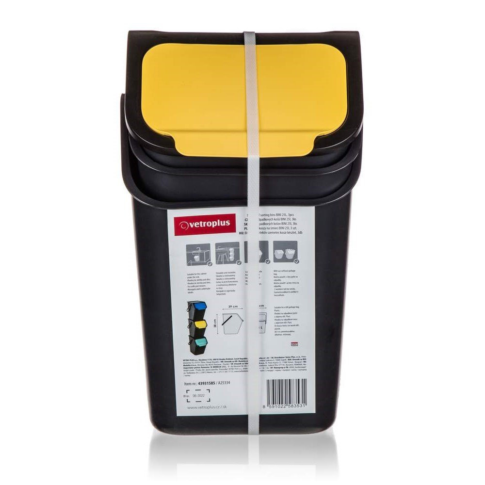 Sada VETRO-PLUS odpadkových košov na triedený odpad BINI 25 l, 3 ks