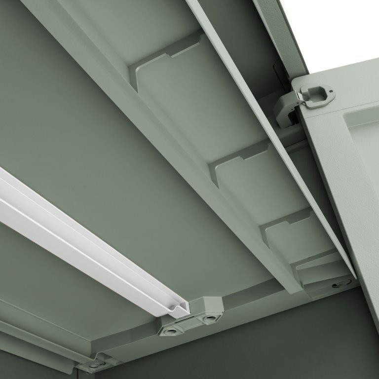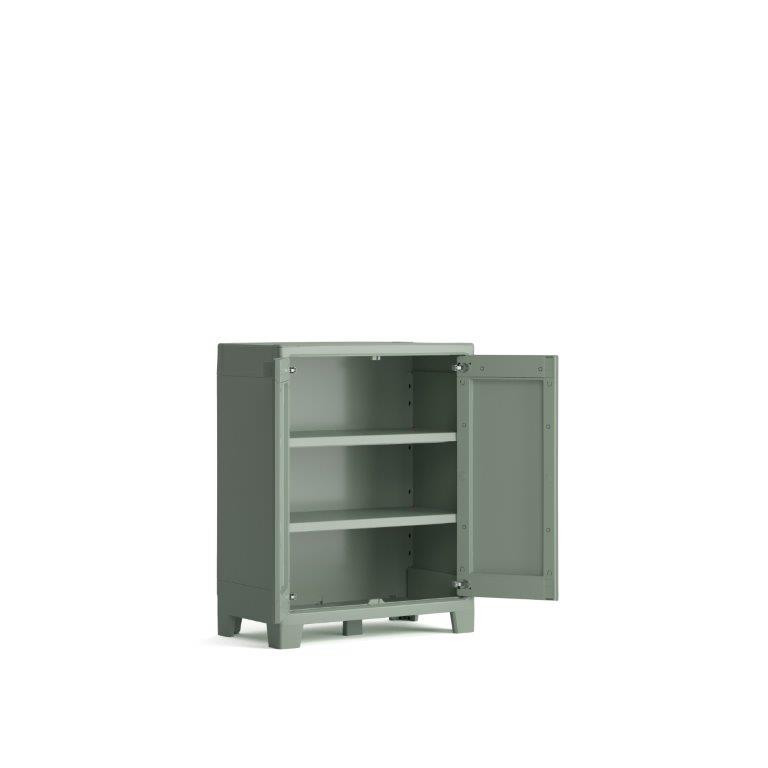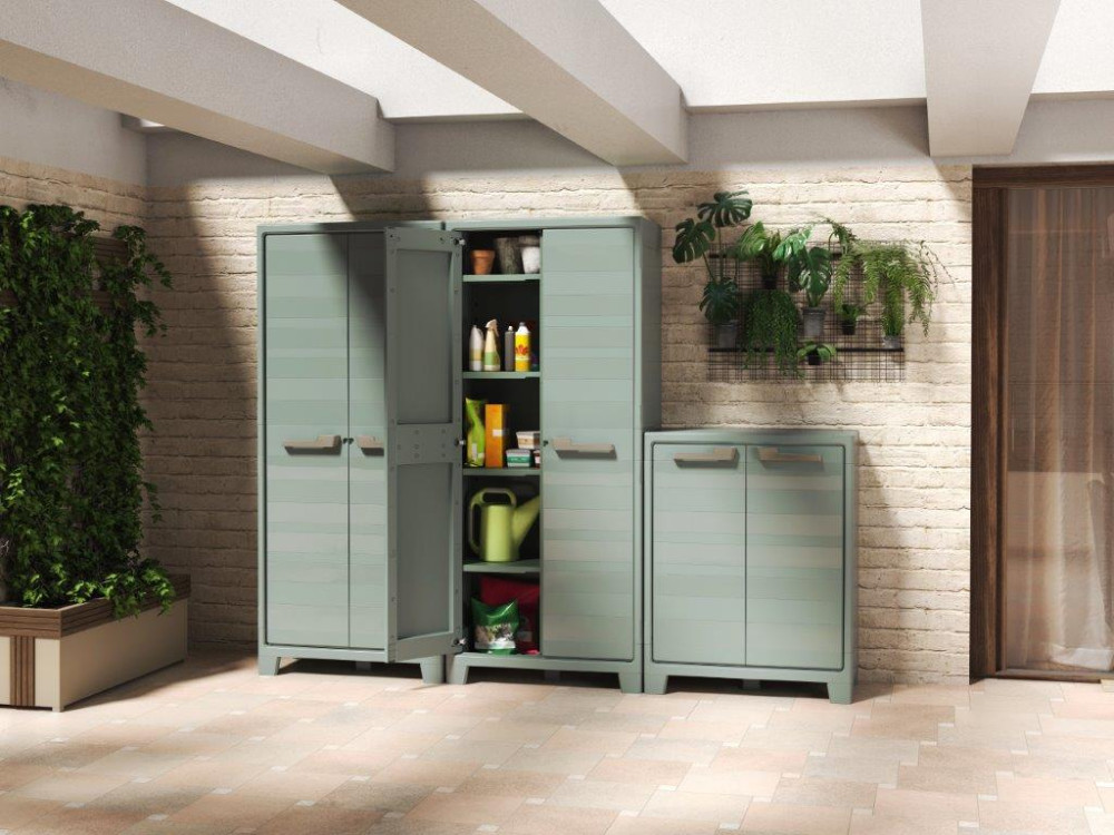 Skriňa je vyrobená z 80 % z recyklovaného plastu. Vďaka možnosti uzamknutia ochránite všetky uschované cennosti pred odcudzením, teda bude vnútorný obsah v bezpečí za každej situácie.