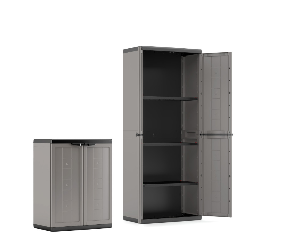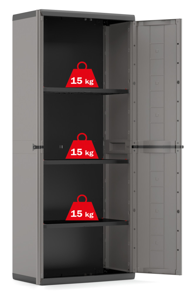 Hľadáte odolnú, ľahkú a jednoducho zostaviteľnú skriňu? Keter Jolly High talianskej výroby vás poteší jednoduchou montážou bez náradia, možnosťou uzamknutia visiacim zámkom a nastaviteľnými policami, z ktorých každá unesie až 15 kg. Plastová skriňa Keter Jolly High je praktickým úložným riešením do dielne, pivnice aj domácnosti.