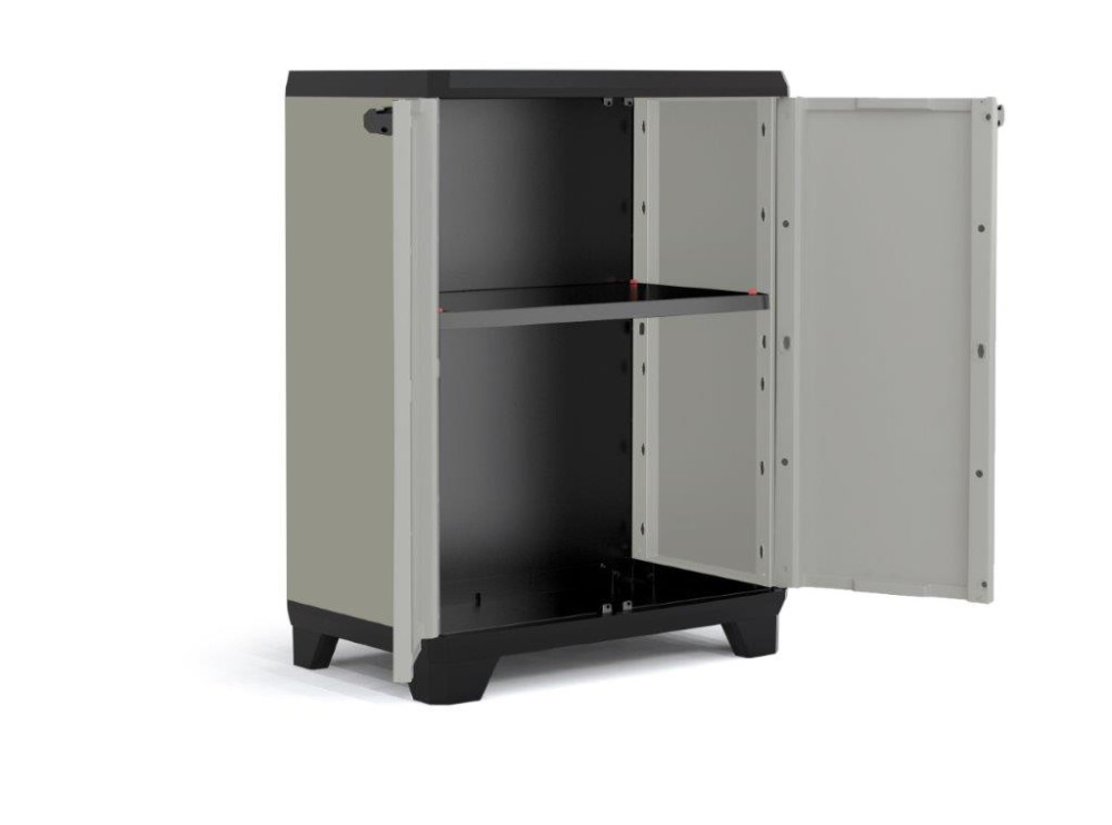 - 1x skriňa Keter Planet Low s policami, nožičkami a uzamykateľnými dverami