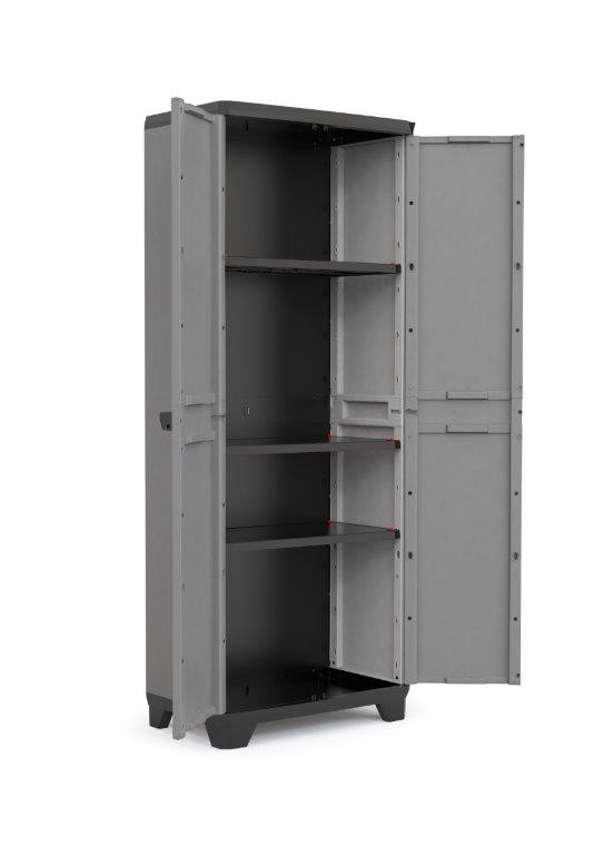Skriňa Keter Stilo High je navrhnutá na každodenné použitie tam, kde potrebujete prehľadne uskladniť rôzne náradie, vybavenie alebo potreby. Vďaka plastovej konštrukcii je ľahká, ale zároveň stabilná. Tri vnútorné police si môžete výškovo prispôsobiť tak, aby vyhovovali vašim potrebám.
