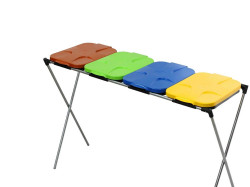 Triedenie odpadu umožňuje recykláciu a opätovné využitie materiálov, čím znižuje množstvo odpadu, ktorý končí na skládkach. Recyklácia materiálov často vyžaduje menej energie ako výroba z nových surovín. Napríklad recyklácia papiera môže šetriť stromy. S tým vám pomôže stojan pre 4 vrecia na triedený odpad značky Geko. Stojan má veká vo farbách žltá, modrá, zelená a hnedá a môžete do nich umiestniť vrecia s objemom 120 až 240 litrov.