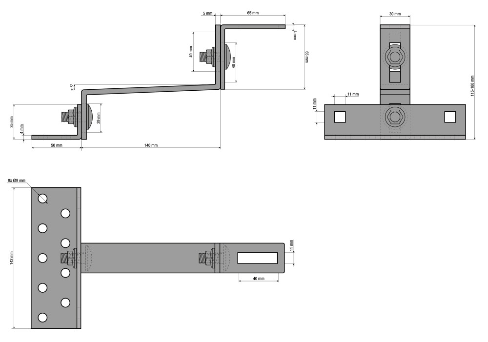 - Rozmery základne s otvormi: 142 x 35 x 4 mm