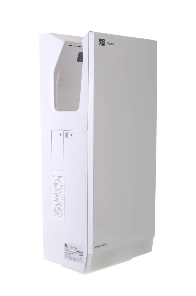 G21 Razor má nízku spotrebu elektrickej energie. Vďaka bezdotykovému zapínaniu a vypínaniu sušiča sa minimalizuje šírenie baktérií na rukách. Silnejšie a rýchlejšie osušenie vám poskytne maximálny komfort. Kryt je vyrobený z antibakteriálneho ABS plastu, ktorý je veľmi ľahký. Dizajn sušiča pôsobí elegantne a čisto.