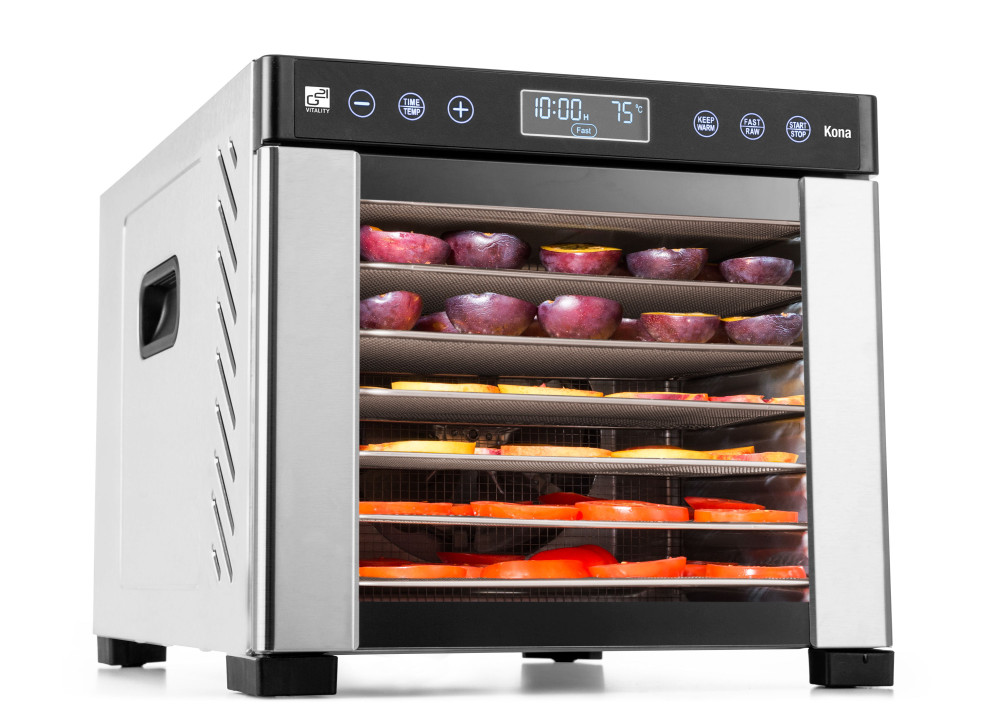 Sucho už má v názve a svojimi schopnosťami aj výkonom vás táto kompaktná sušička rozhodne prekvapí. Ak ste pri výbere sušičky potravín došli k názoru, že hľadáte skôr menšiu sušičku, zato ale s profesionálnymi vlastnosťami i prevedením, Kona je presne tou pravou sušičkou ovocia, zeleniny, húb, mäsa i byliniek pre vás.