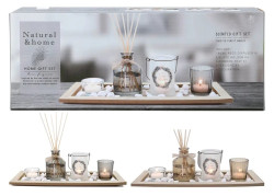 Svietnik / diffuser 36 x 14 x 1 cm, 5 dielov + dekorácia drevo/sklo