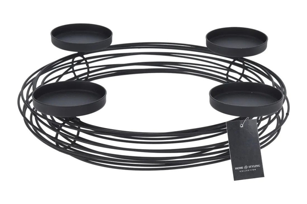- Svietnik na 4 sviečky guľ. pr. 35,5 × 32 × 7 cm kov. drôtený ČIERNY
