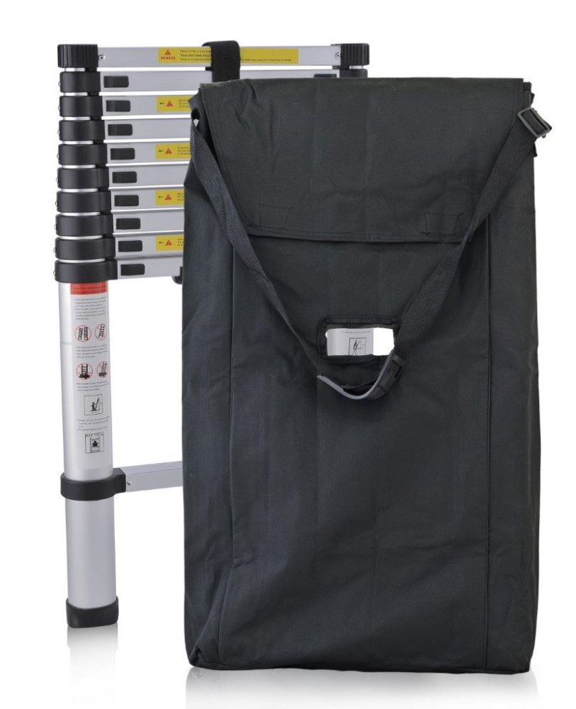 Jej pohodlný trak je opatrený náramenníkom, vďaka ktorému sa váha rebríka rozloží na väčšiu plochu a manipulácia s ním tak bude oveľa jednoduchšie. Uprostred tašky na teleskopický rebrík je otvor pre rýchle a pohodlné uchopenie rebríka.