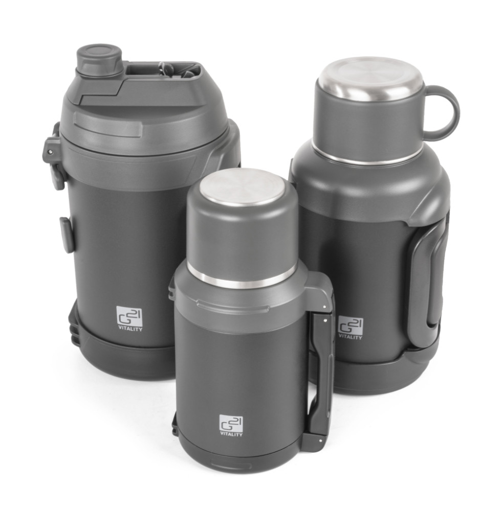 Robustná konštrukcia, zdravotne nezávadný materiál a praktická skladacia rukoväť robia z termosky G21 ideálneho spoločníka na každý deň. Zmestí sa do batohu, tašky aj do cyklobrašne. Či už idete do práce, školy alebo na túru, termoska G21 vám zabezpečí obľúbený nápoj vždy po ruke.