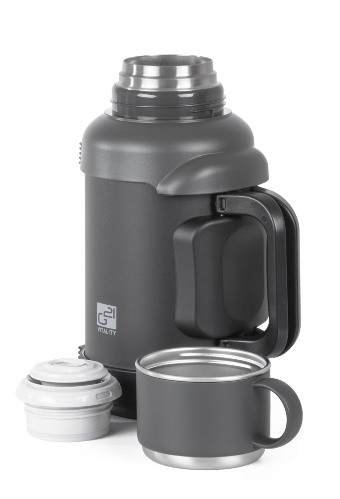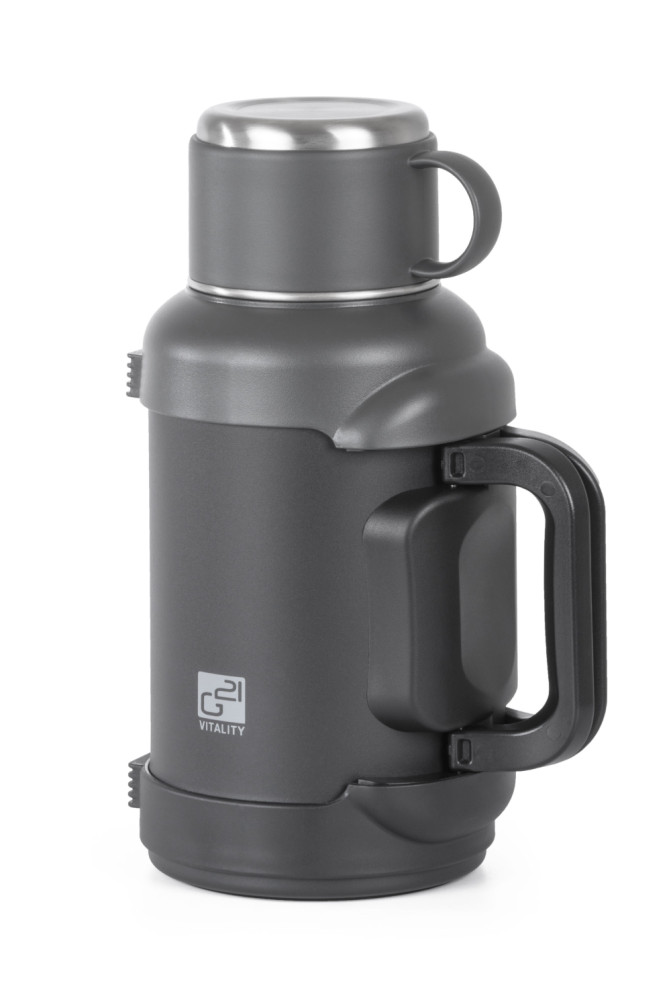 Robustná konštrukcia, zdravotne nezávadný materiál a skladacia rukoväť pre pohodlné prenášanie robia z termosky G21 dokonalý doplnok na každý deň. Pohodlne sa zmestí do batohu aj športovej tašky a s objemom 2500 ml zabezpečí pitný režim na celý deň. Či už idete do práce, na túru alebo do posilňovne – termoska G21 vám vždy zabezpečí obľúbený nápoj po ruke.