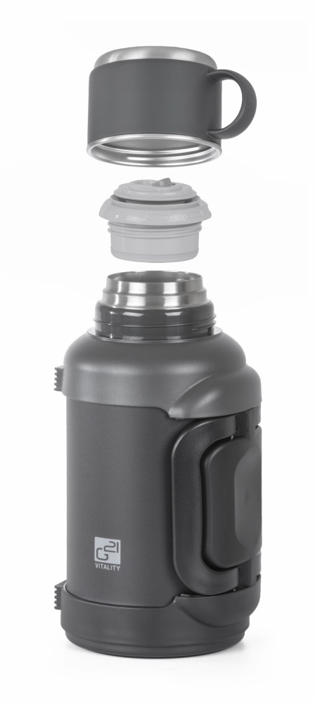 Termoska G21 je vyrobená z kvalitnej nerezovej ocele a vďaka dvojitým stenám a tesniacemu veku udrží teplotu nápoja po dlhý čas – horúce až 12 hodín, studené až 24 hodín.