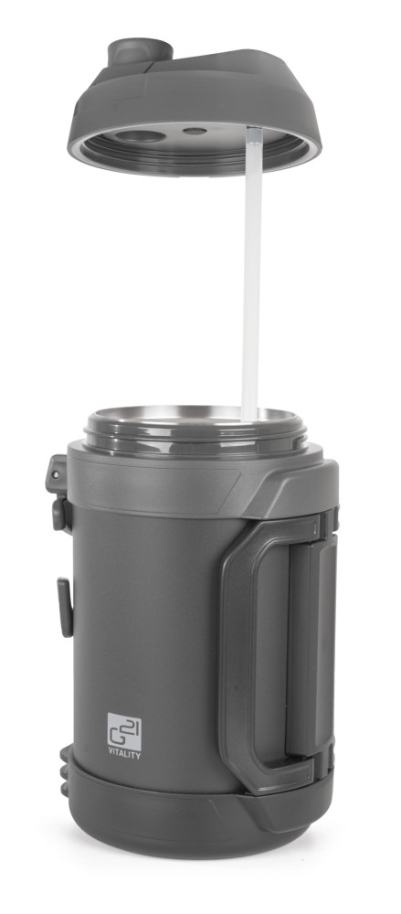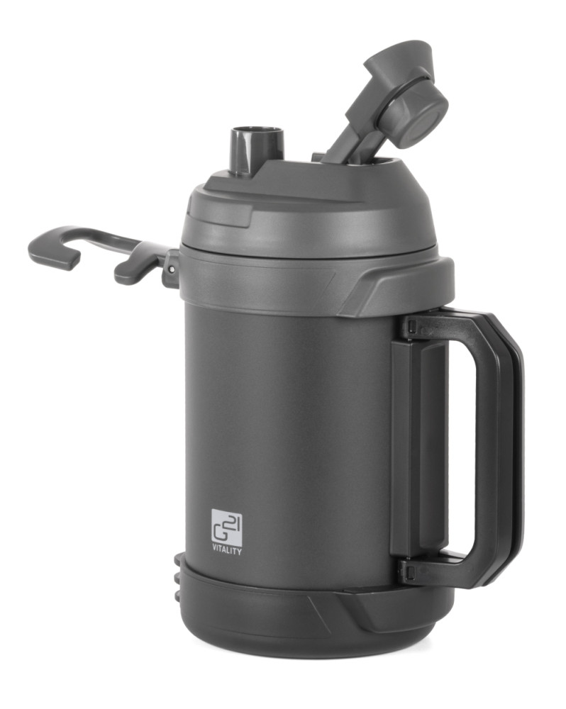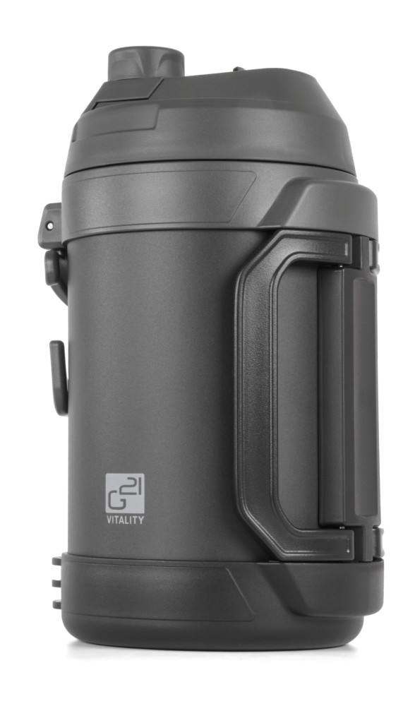 Veko termosky má klasický náustok a výklopnú slamku. Pri studených nápojoch oceníte slamku, pri horúcich je bezpečnejšie použiť náustok. Náustok zároveň slúži ako presná nálevka na nalievanie do šálky či pohára. Dvojitá nerezová stena udrží nápoj v ideálnej teplote po celý deň. Či vás čaká bežkársky výlet, letný turnaj alebo oddych pri vode, termoska G21 nesklame.