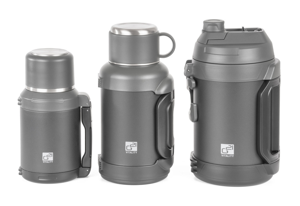 Robustná konštrukcia, zdravotne nezávadný materiál a praktická skladacia rukoväť robia z termosky G21 ideálneho spoločníka na každý deň. Je vyrobená z vysoko odolnej nerezovej ocele. Spojenie kvality, praktickosti a premysleného dizajnu z nej robí skvelú voľbu pre každého turistu aj športovca.