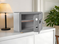 Do trezoru G21 sme pridali odnímateľnú policu, vďaka ktorej si vnútorný priestor jednoducho prispôsobíte podľa aktuálnych potrieb. Nezáleží na tom, či chcete uložiť doklady, šperky alebo cennú techniku, vždy budete mať dostatok miesta. K dispozícii máte 23,6 litra úložného priestoru.