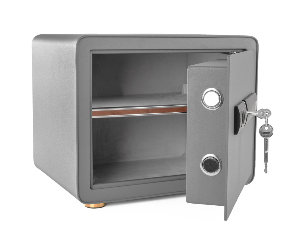 Pri bezpečnosti záleží na detailoch. K svojim cennostiam sa dostanete rýchlo, pohodlne, bezpečne a bez zbytočných hesiel. Dvierka sme vybavili biometrickým zámkom pre až 29 uložených odtlačkov prstov, ktorý po priložení prsta trezor otvorí v priebehu sekundy. A čo ak sa vybije batéria? Jednoducho použijete záložný bezpečnostný kľúč, ktorý je súčasťou balenia.