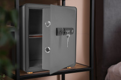 Do trezoru G21 sme pridali odnímateľnú policu, vďaka ktorej si vnútorný priestor jednoducho prispôsobíte podľa aktuálnych potrieb. Nezáleží na tom, či chcete uložiť doklady, šperky alebo cennú techniku, vždy budete mať dostatok miesta. K dispozícii máte 46 litrov úložného priestoru.