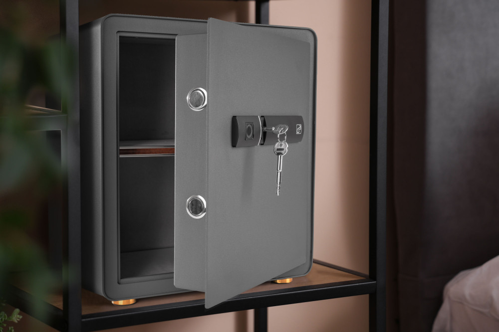 Pri bezpečnosti záleží na detailoch. K svojim cennostiam sa dostanete rýchlo, pohodlne, bezpečne a bez zbytočných hesiel. Dvierka sme vybavili biometrickým zámkom pre až 29 odtlačkov prstov, ktorý po priložení prsta trezor otvorí v priebehu sekundy. A čo ak sa vybije batéria? Jednoducho použijete záložný bezpečnostný kľúč, ktorý je súčasťou balenia.