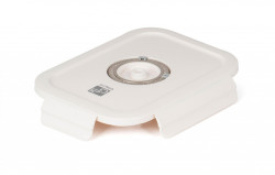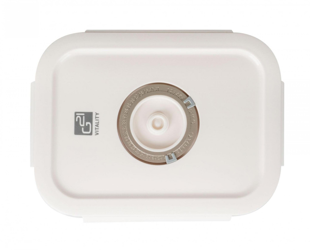 Plastové veko je vybavené vákuovacím ventilom a praktickým nastavovaním dátumu. Budete tak vedieť, kedy boli potraviny vákuované alebo do kedy sa majú spotrebovať. Ventil uprostred veka je možné jemne stlačiť pre ľahké uvoľnenie vákua.