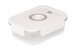 - Vysoká odolnosť skla voči teplotám od -20 do +400 °C – v dóze s vekom môžete potraviny vákuovať, uložiť do chladničky alebo zamraziť, po sňatí veka aj zapekať