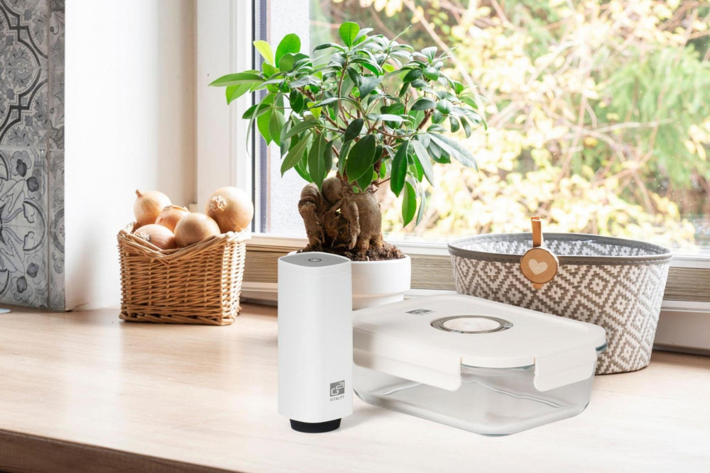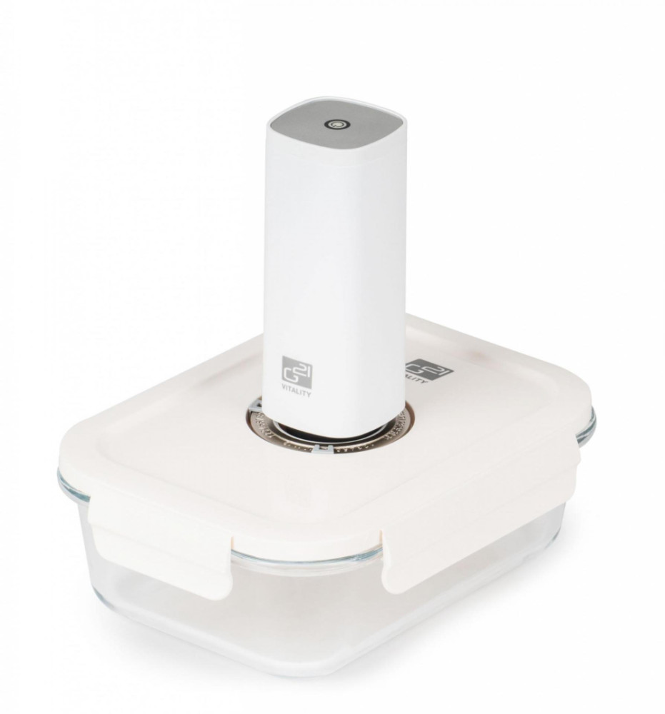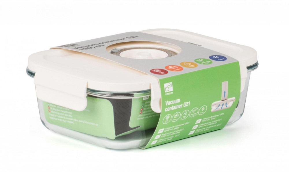 Pre pohodlné a ľahké vákuovanie čerstvých aj hotových potravín odporúčame vynikajúcu vákuovaciu dózu G21 s objemom 1 040 ml. Predĺži trvanlivosť potravín, zachová im čerstvosť aj plnú chuť a vôňu a predovšetkým všetky zdraviu prospešné látky. Veľkou výhodou tejto dózy je jej široké využitie – potraviny v nej po zavákuovaní môžete uložiť do chladničky, zamraziť alebo po zložení veka rovno zapekať v rúre či teplovzdušnej fritéze.