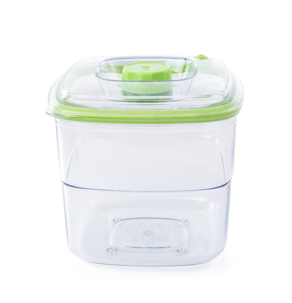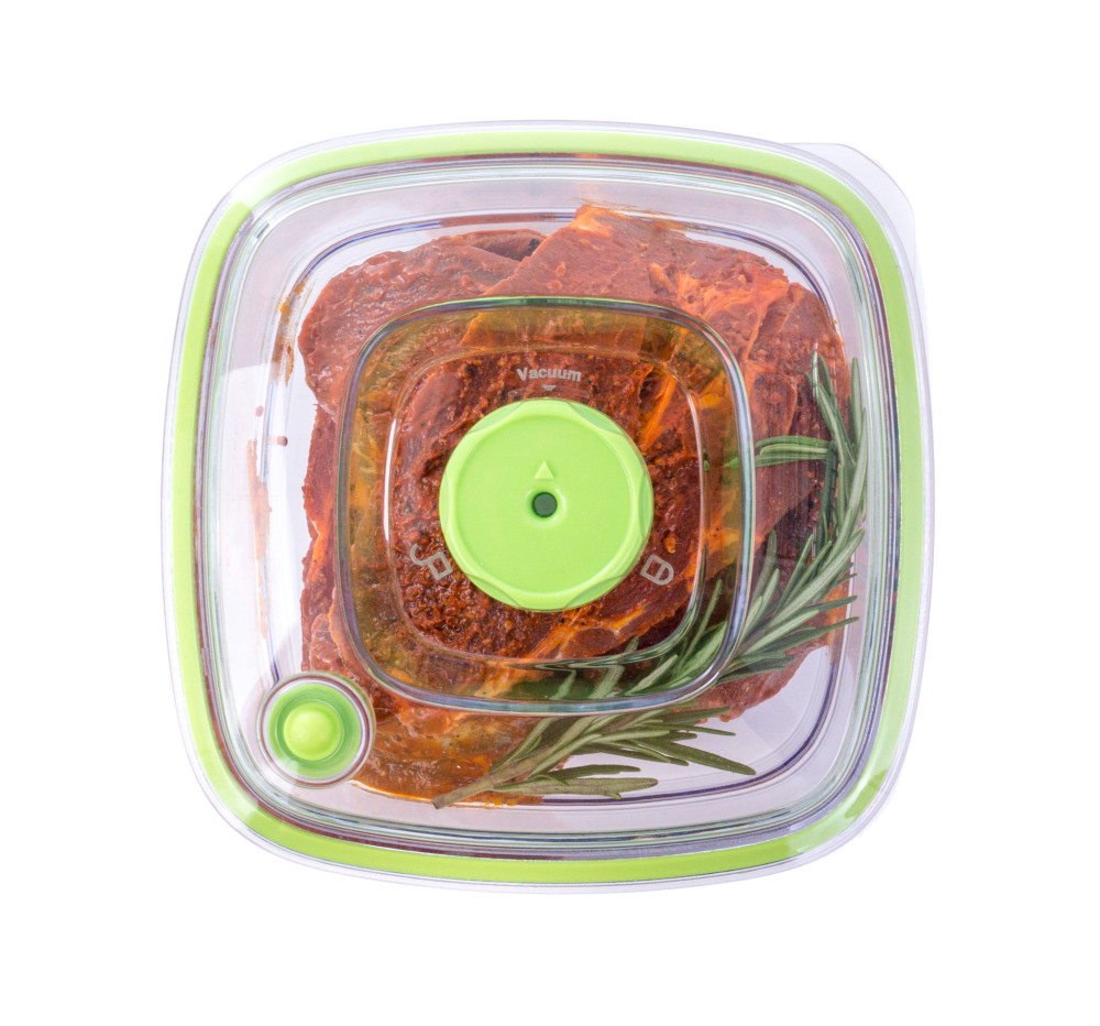 Vákuovacia dóza G21 na marinovanie a predĺženie trvanlivosti potravín má praktický štvorcový tvar, takže je dobre skladovateľná. Vyrobili sme ju zo zdravotne nezávadného BPA Free plastu s vysokou odolnosťou a stálosťou. Dôležité je aj veko s otvorom pre vákuovanie, ktoré skvele tesní a zabráni tak prístupu vzduchu k zavákuovaným surovinám.