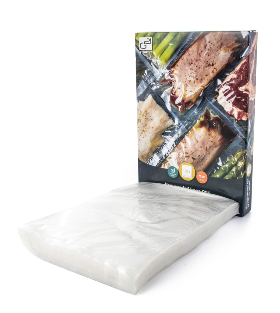 Vákuovacie vrecká G21 s rozmermi 28 x 40 cm sú vďaka svojej vysokej pevnosti a kvalitnému prevedeniu vhodné nielen pre predĺženie trvanlivosti potravín vákuovaním a ich uchovávanie v chladničke alebo v mrazničke, ale využijete ich aj k vákuovaniu surovín pre sous-vide varenie.