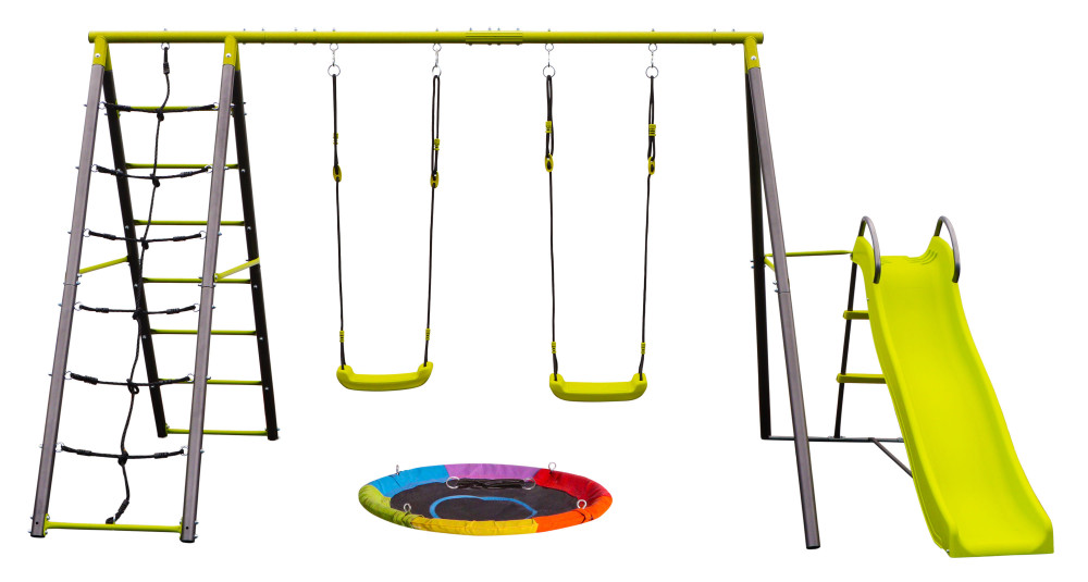 Ako dopriať deťom veľa skvelej a zároveň bezpečnej zábavy? Zaobstarajte im veľký záhradný set s hojdačkami, hojdacím kruhom, lezeckou stenou i šmykľavkou. Na kruhu sa deti pohodlne pohupujú, na hojdačkách pretekajú, ktorí vyššie doletí, šmykľavka ich zabaví a zlepší im fyzičku a lezecká stena ich motivuje skúsiť niečo nové.
