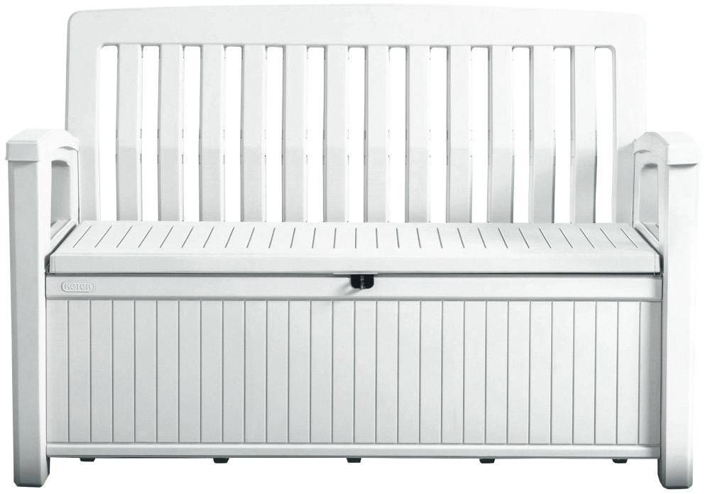 Zháňate praktické a zároveň pohodlné posedenie? Zaobstarajte si záhradnú lavicu Patio Bench značky Keter, na ktorú sa bez obáv posadia dvaja ľudia. Očarí vás jej elegantný dizajn v bielej farbe, ktorý verne imituje drevo. Do šikovného úložného priestoru pod sedadlom s objemom 227 l môžete odkladať najrôznejšie záhradnícke náčinie, deky alebo vankúše na sedenie. Veľkou výhodou je aj možnosť uzamknutia úložného boxu.
