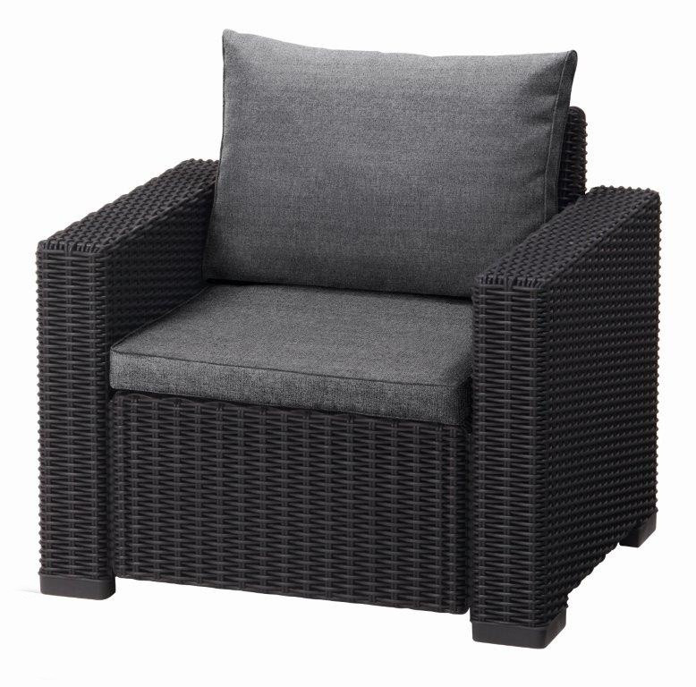 2 kusy záhradných kresiel California v grafitovej farbe značky Keter vás nadchnú svojim nevšedným dizajnom v imitácii prírodného ratanu. Konštrukcia je pritom pevná a vydrží bežné zaťaženie vonkajšej prevádzky.