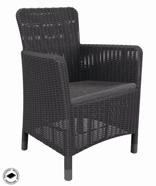 Dizajn umelého pleteného ratanu v grafitovej farbe zaujme na prvý pohľad a kreslo vďaka štýlovému a modernému vzhľadu zapadne dokonale do každého interiéru i vonkajších priestorov.