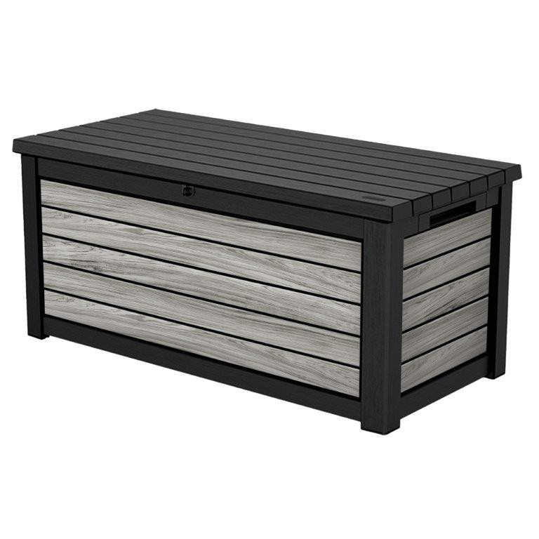 Box je vyrobený z odolného plastu s DECOCOAT technológiou, ktorá zaručuje dlhú životnosť a vzhľad prírodného dreva. Materiál nehrdzavie, nelúpe sa a nehnije, takže box si nevyžaduje žiadnu údržbu. Vďaka jednotnému dizajnu sa skvele hodí k ďalším prvkom Keter v odtieni storm grey – napríklad k domčekom alebo skrinkám na odpadky.