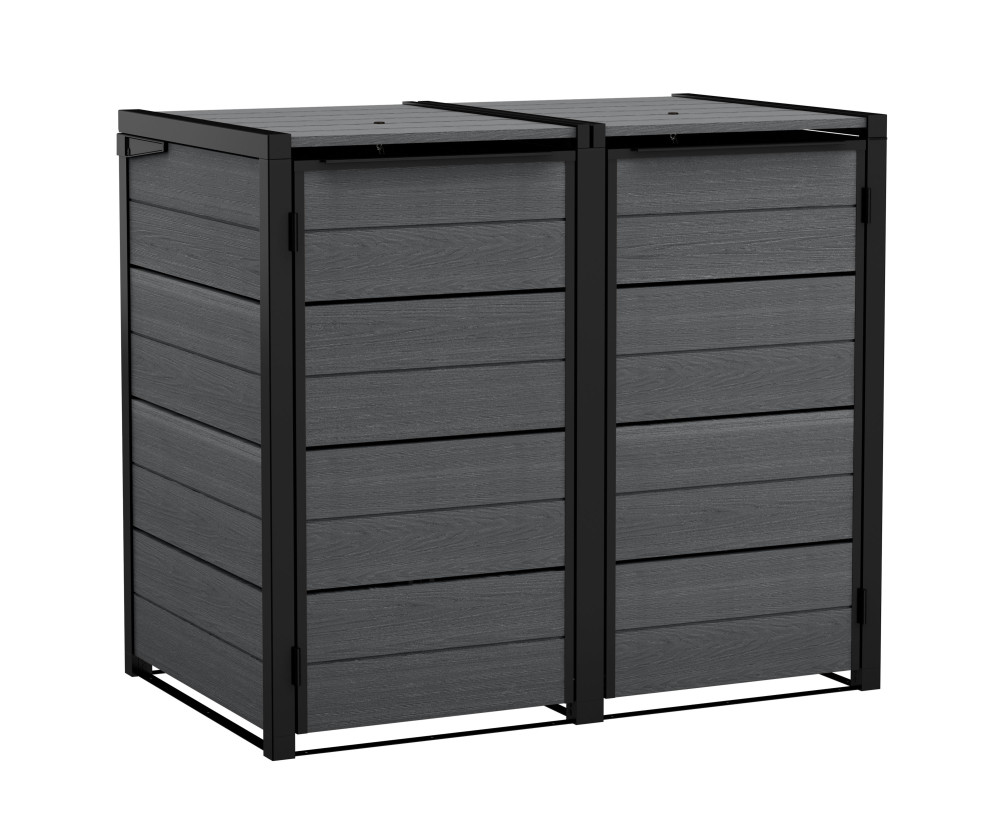Vonkajší box Keter Hide Away vám poskytne dostatok miesta až na 2 popolnice – každá s objemom 120 l. Nielenže ich ukryje, ale zároveň bráni šíreniu nepríjemného zápachu vyhodených odpadkov a ich nechcenému prevráteniu. Obe časti boxu otvorte pomocou horného veka s hydraulickými piestami alebo dverí na prednej strane. Umožní vám ľahký prístup k smetiakom.