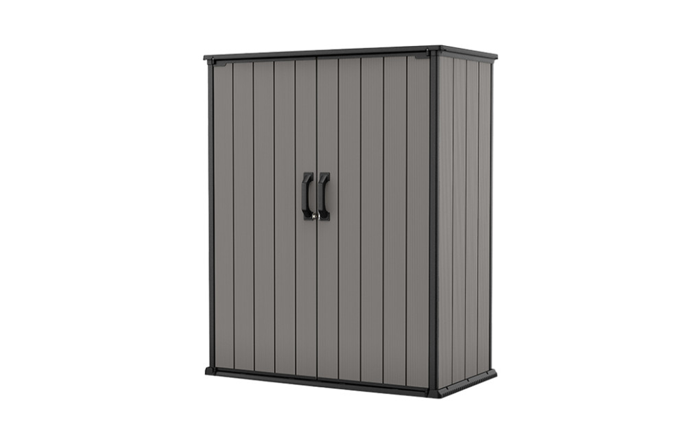 - Priestranná 1500l skriňa Keter Premier High Store slúži pre bezpečné uskladnenie menších i väčších kusov záhradného náčinia či grilu