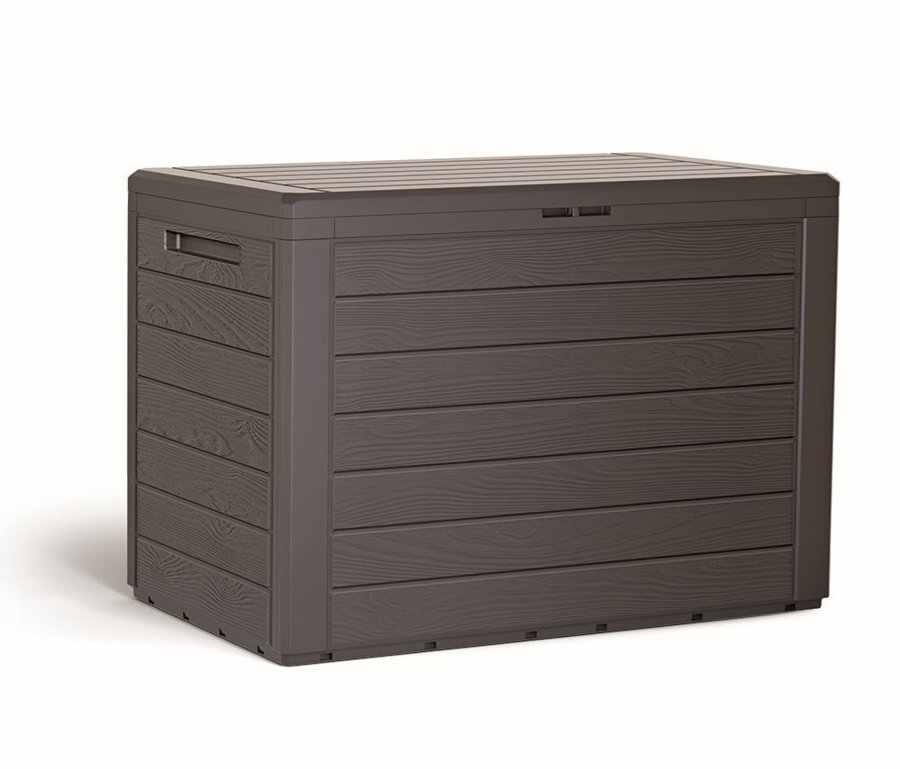 Záhradný box Woodebox značky Prosperplast predstavuje praktického pomocníka do vonkajších priestorov. Vďaka svojmu drevenému dizajnu bude ozdobou vašej záhrady, terasy alebo balkóna. Jeho hnedá farba pôsobí príjemne na pohľad. Uschovajte do boxu s odvetrávaním všetko potrebné od detských hračiek po deky a vankúše. Možno ho zabezpečiť aj visiacim zámkom a zamknúť cennejšie veci vo vnútri. Zostavenie boxu zvládne každý. Jednotlivé časti boxu sa zacvakajú do seba, takže vám jeho zostavenie nezaberie veľa času a nebudete potrebovať ani žiadne náradie. Na bočných stranách boxu sa nachádzajú madlá na jednoduché prenášanie. Veko boxu je odklápacie pomocou plastových pántov.