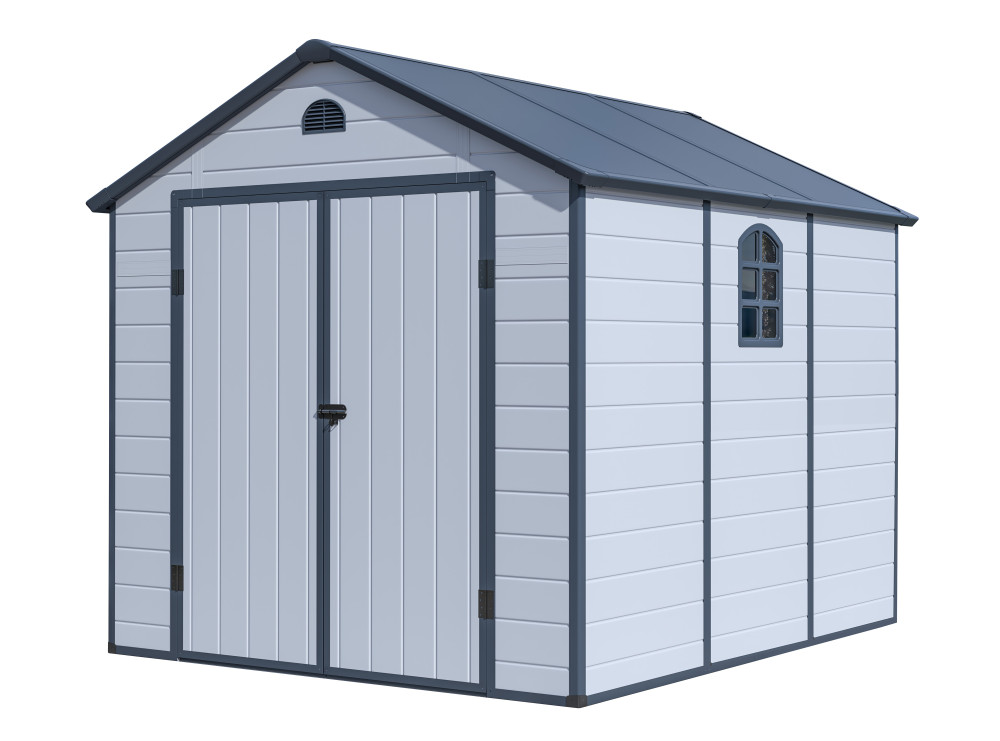 Záhradný domček G21 Boston 670 - 241 x 278 cm, plastový, svetlo šedý