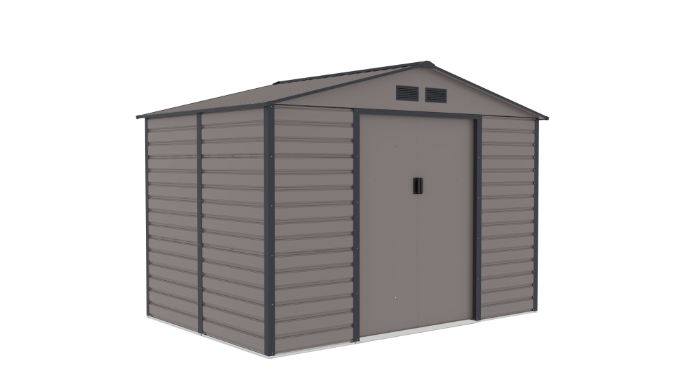Záhradné domčeky na náradie v modernom dizajne sa hodia do každej záhrady. Vstupné dvere sú dostatočne široké, preto do domčeka pohodlne uložíte svoje náradie, záhradný fúrik i vonkajší nábytok.