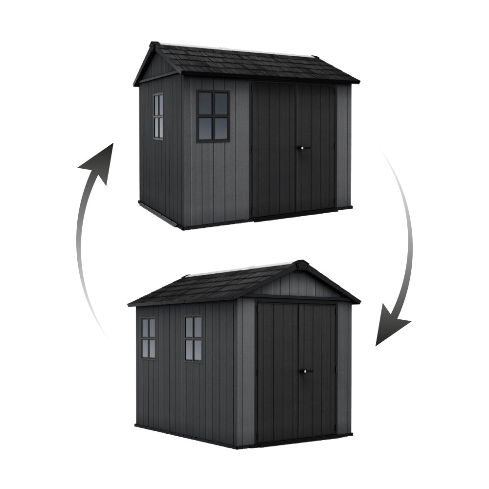 Domček zostavíte 2 rôznymi spôsobmi podľa svojich vlastných predstáv. Záleží len na vás, na akú stranu umiestnite dvere a okná. Do interiéru navyše ľahko namontujete skrine, knižnice alebo police na náradie. Tým rozšírite úložný priestor záhradného domčeka.