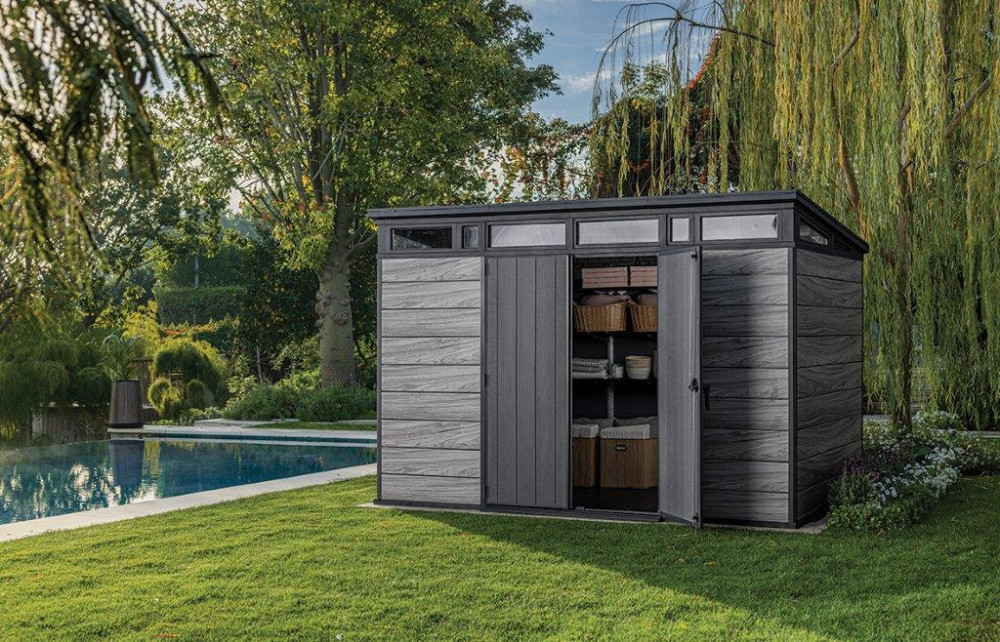 - Záhradný domček Keter PENT Signature 11x7 Storm Grey, s podlahou