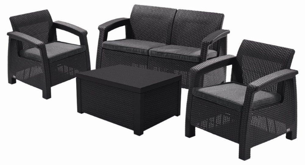 - Záhradný nábytok Keter Corfu box set dvousedačka + dvě křesla + stůl grafitový