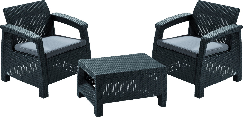 - Záhradný nábytok Keter Corfu weekend set dve kreslá + stôl grafitový