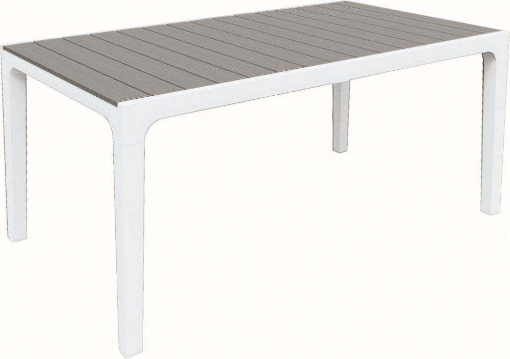 Záhradný stôl Harmony značky Keter vás nadchne svojim subtílnym lookom a štýlovým dizajnom v kombinácii imitácie dreva a bielej umelej živice. Konštrukcia je pritom pevná a vydrží bežné zaťaženie vonkajšej prevádzky.
