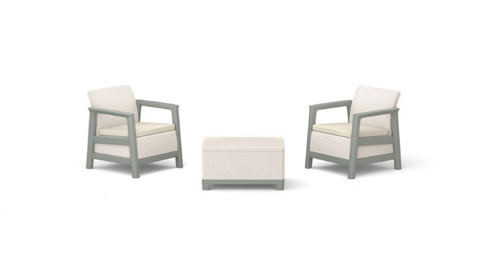 Súprava Scandi od značky Keter spája rustikálny prírodný vzhľad s čistými líniami typickými pre škandinávsky dizajn. Sivé prevedenie konštrukcie v kombinácii s béžovými sedákmi a poduškami pôsobí elegantne a ľahko zapadne do exteriéru aj interiéru. Set obsahuje 2 pohodlné kreslá a stolík s úložným priestorom, ktorý využijete na uloženie podušiek, diek alebo drobných doplnkov.