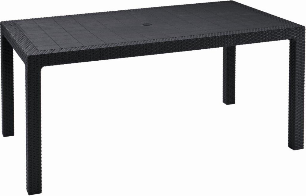 Stôl je dostatočne rozmerný, aby sa u neho usadila celá vaša rodina alebo väčšia skupina vašich priateľov. Pri horúcich letných dňoch sa môžete schovať pred slnečnými lúčmi, pretože sa v strede stola nachádza otvor pre slnečník s priemerom 5 cm. Skvele sa hodí do klasického i moderného exteriéru, kde sa bude vynímať bez ohľadu na zvolený koncept vašej záhrady, altánku alebo terasy. Zostavenie je jednoduché, údržba je ešte jednoduchšia, pretože vám stačí len vlhka handrička a pár krátkych chvíľ.